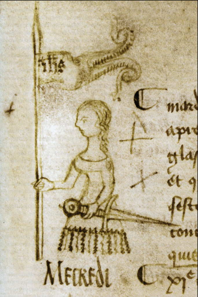 Imatge: Dibuix del 1429 de Clément de Fauquembergue al marge d’un protocol del Parlament de París.
