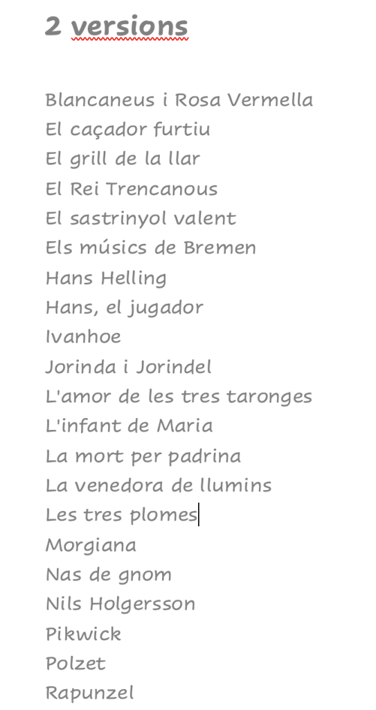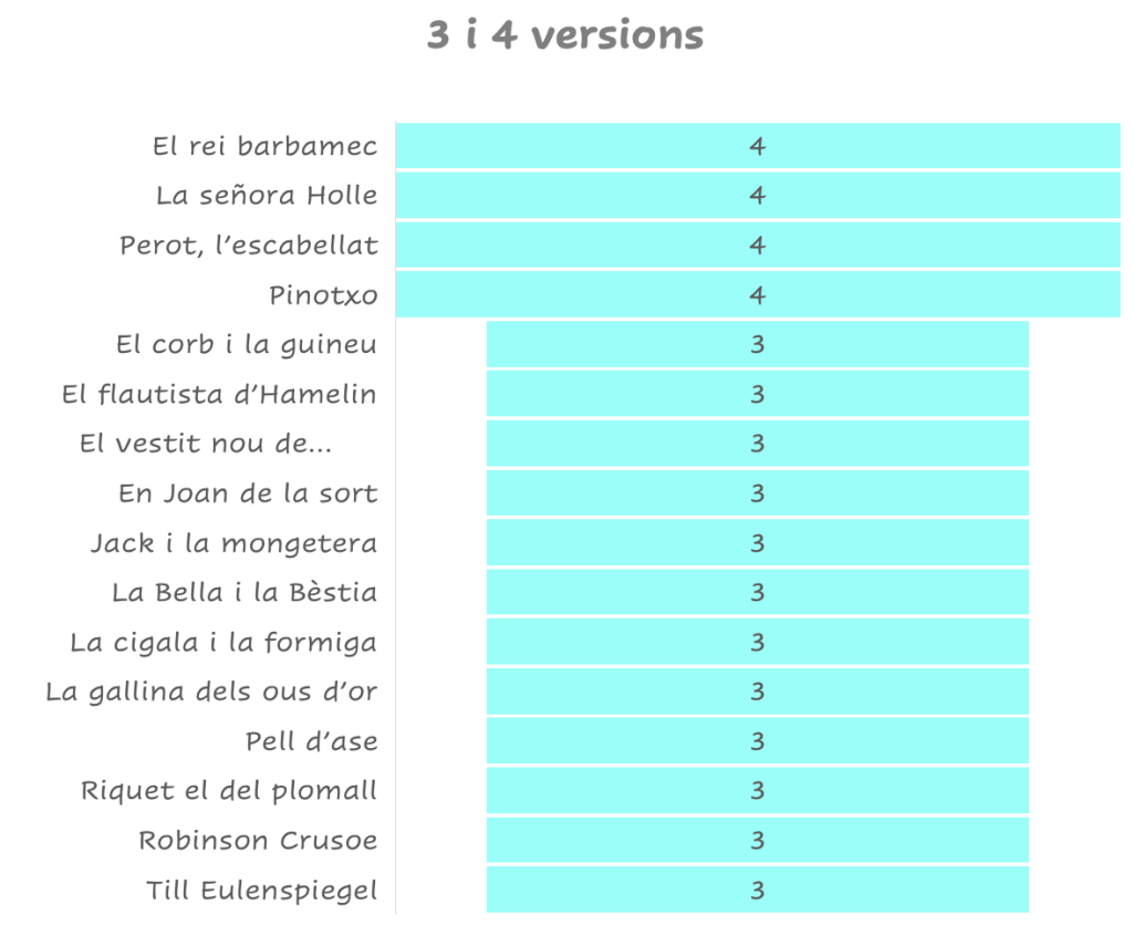 Nombre de versions de les obres